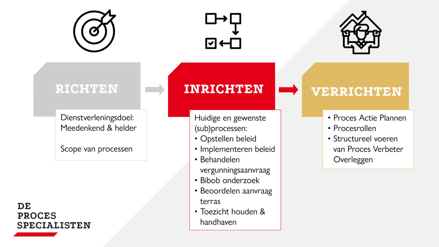 “Bij de gemeente Zwolle wisten ze dat de dienstverlening beter en efficiënter kon, maar een concrete aanpak ontbrak”, stelt Linda van Vechgel, consultant bij De Processpecialisten. Zij nam namens haar bureau de projectbegeleiding in Zwolle voor haar rekening. Nog voor zij aan de slag ging, hield een partner van De Processpecialisten een sessie met het management team waar Mathilde deel van uitmaakt. “Hij daagde ons uit om onze ambitie te definiëren”, legt ze uit. “Uiteindelijk kwamen we tot de slotsom dat we ons richting Zwolse horeca vooral duidelijk en meedenkend wilden opstellen.”